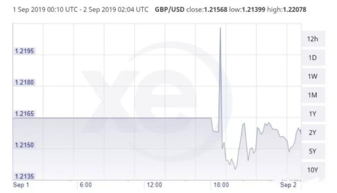 9月1日,英镑兑美元汇率几个小时内暴涨暴跌