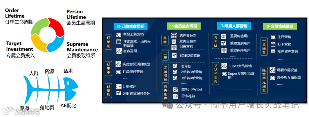 3.1 面向总部会员经营业务场景:苏宁通过精细化的会员运营策略,构建了一套全方位的用户营销模型矩阵,OPTS场景模型,旨在提升用户的购买体验和品牌忠诚度。以下是苏宁在不同营销模型中实施的关键策略: