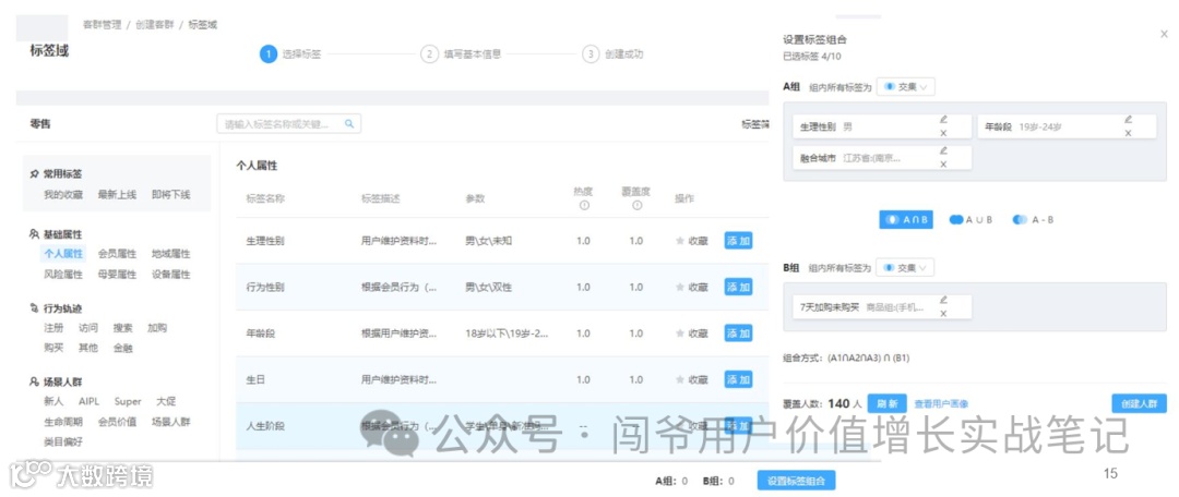 通过特定的标签单项选择或是多重标签的交叉筛选,商家和项目管理者能够建立独特的人群画像,这就意味着他们可以同时达到并满足一系列特定的条件需求。
