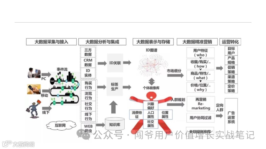 无论是用户分群、用户标签还是用户画像,其目标皆是增强企业精细化运营能力以促进增长。不能仅凭臆断构建一完整体系,忽视了画像的核心价值——用户画像是商业目的下的用户标签综合体。并非有画像就能推动及提升业务,而应基于商业运营目的,而需要用户画像。