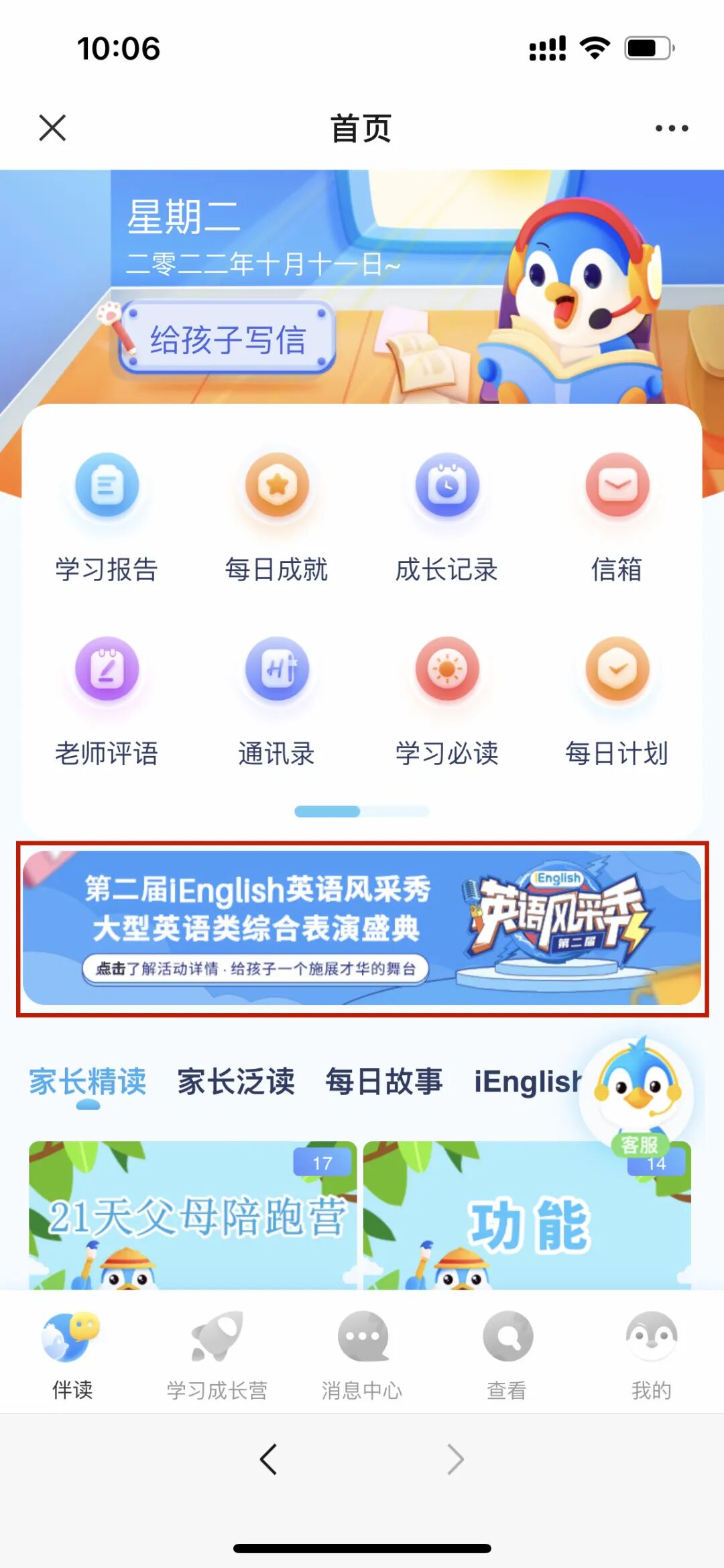 「家长圈主页→英语风采秀活动页→个人主页→点击查看电子证书」
