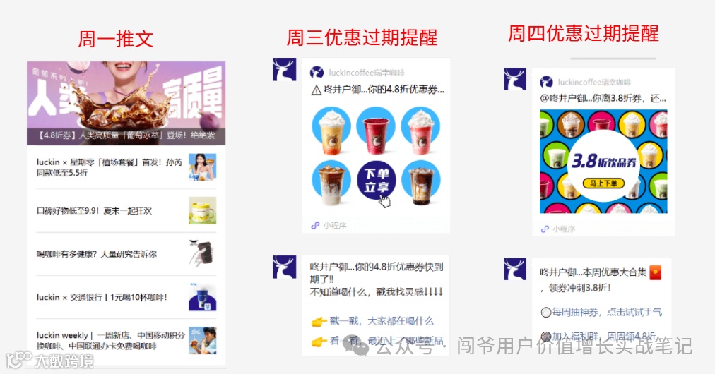 案例:瑞幸咖啡针对白领用户在特定时间段及时段进行精准的营销活动,以保证唤醒效果。