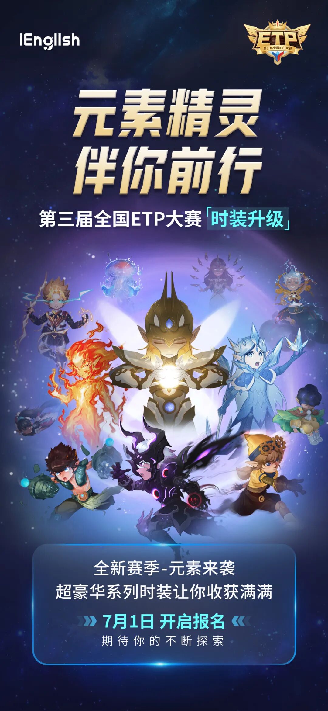 第三届全国ETP大赛开放全新赛季主题——元素来袭,全新的皮肤装扮,全新的背景故事,代表各元素的精灵将与选手们“并肩作战”,奇幻的冒险之旅,为激烈的比赛带来更多趣味体验。