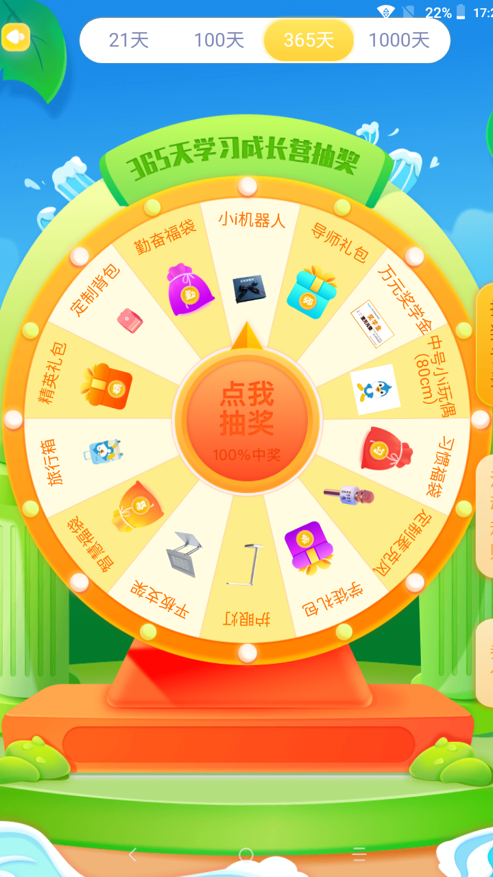 以学习成长营为例,它是iEnglish专门为鼓励孩子“坚持阅读学习”所设置的奖励型活动,从21天到1000天,只要孩子能每天阅读iEnglish,即可在达到相应坚持天数后,获得各类奖品。