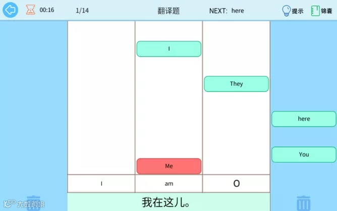 这些板块将基础知识的学习融入游戏之中,例如语法训练板块的学习成果检测,采用“消除”游戏的形式。这种趣味横生的学习方式是非常适合小学生的。