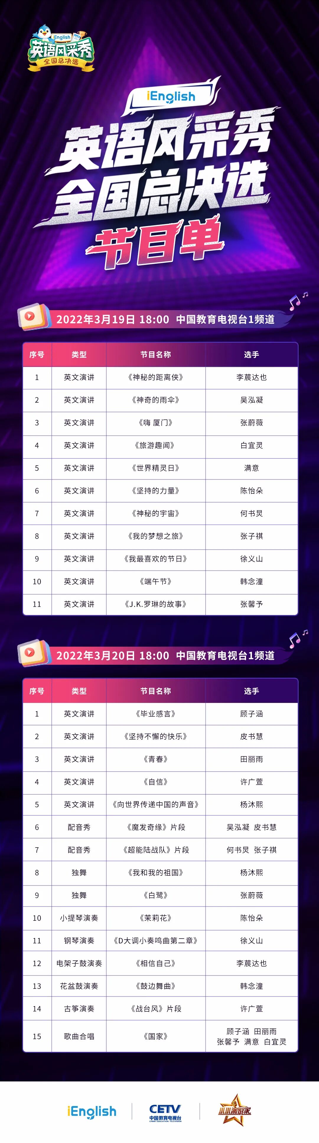 我们希望通过iEnglish英语风采秀,给所有喜欢英语、热爱表达的孩子们一个培养自信、展现自我的舞台,全面激发孩子的英语表达能力,用英语与世界对话,见证他们的成长与风采!