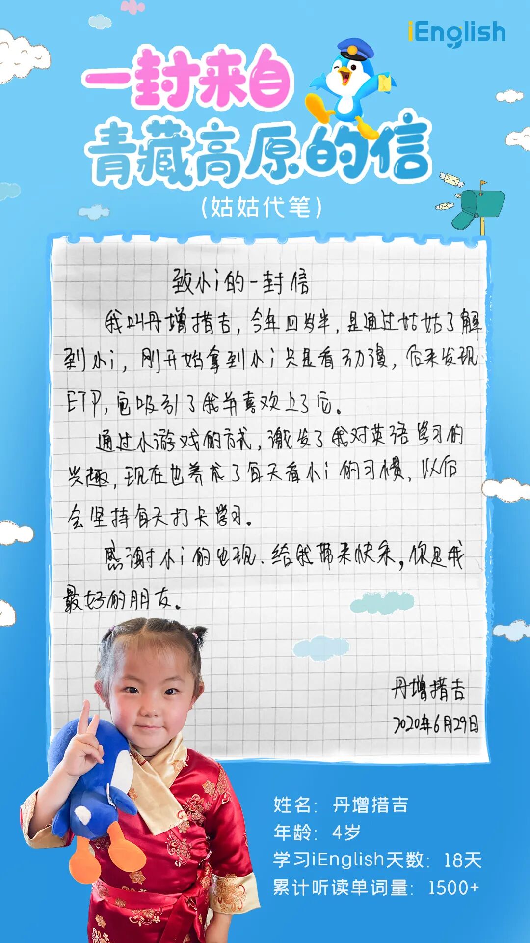 最近小i收到了很多西藏小朋友的来信,其中最让小i感动的是这位丹增措吉小朋友的信......