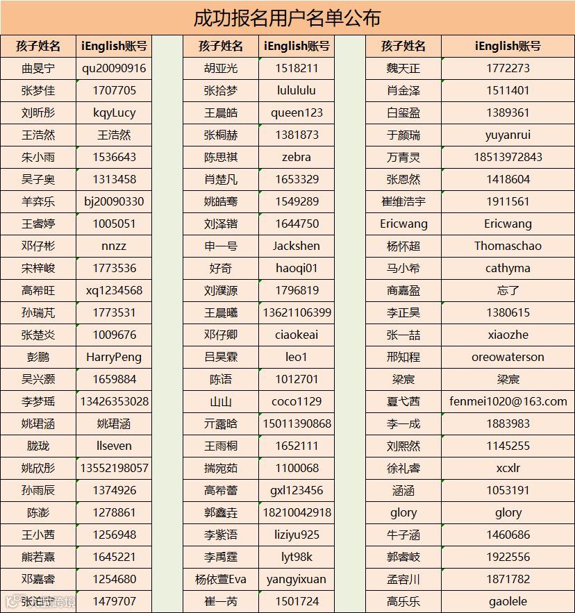 恭喜以下用户成功报名,快看看你是否“榜上有名”吧~