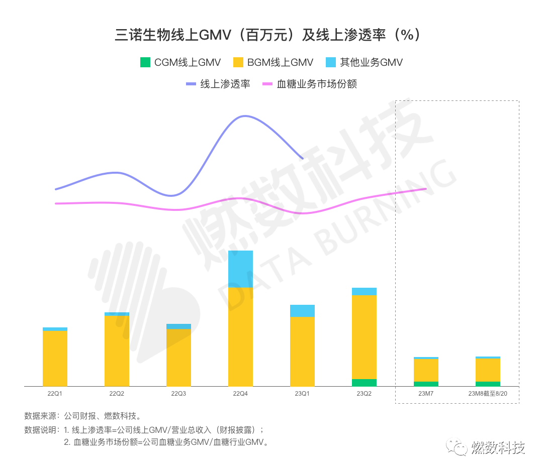 三诺生物及鱼跃医疗以明显的线上渠道优势和性价比优势快速抢占市场,远超22年初硅基/微泰上市放量速度。