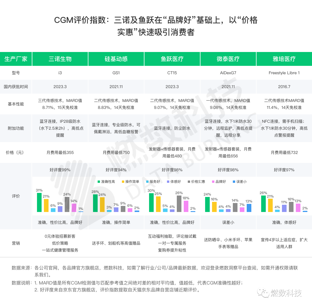 CGM头部表现对比:三诺/鱼跃性价比优势明显,快速搅动市场竞争格局