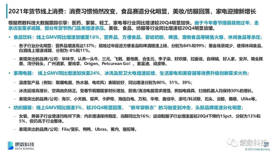 基于燃数科技自行研发的大数据跟踪引擎,我们为大家带来2021年年货节最新线上消费洞察。