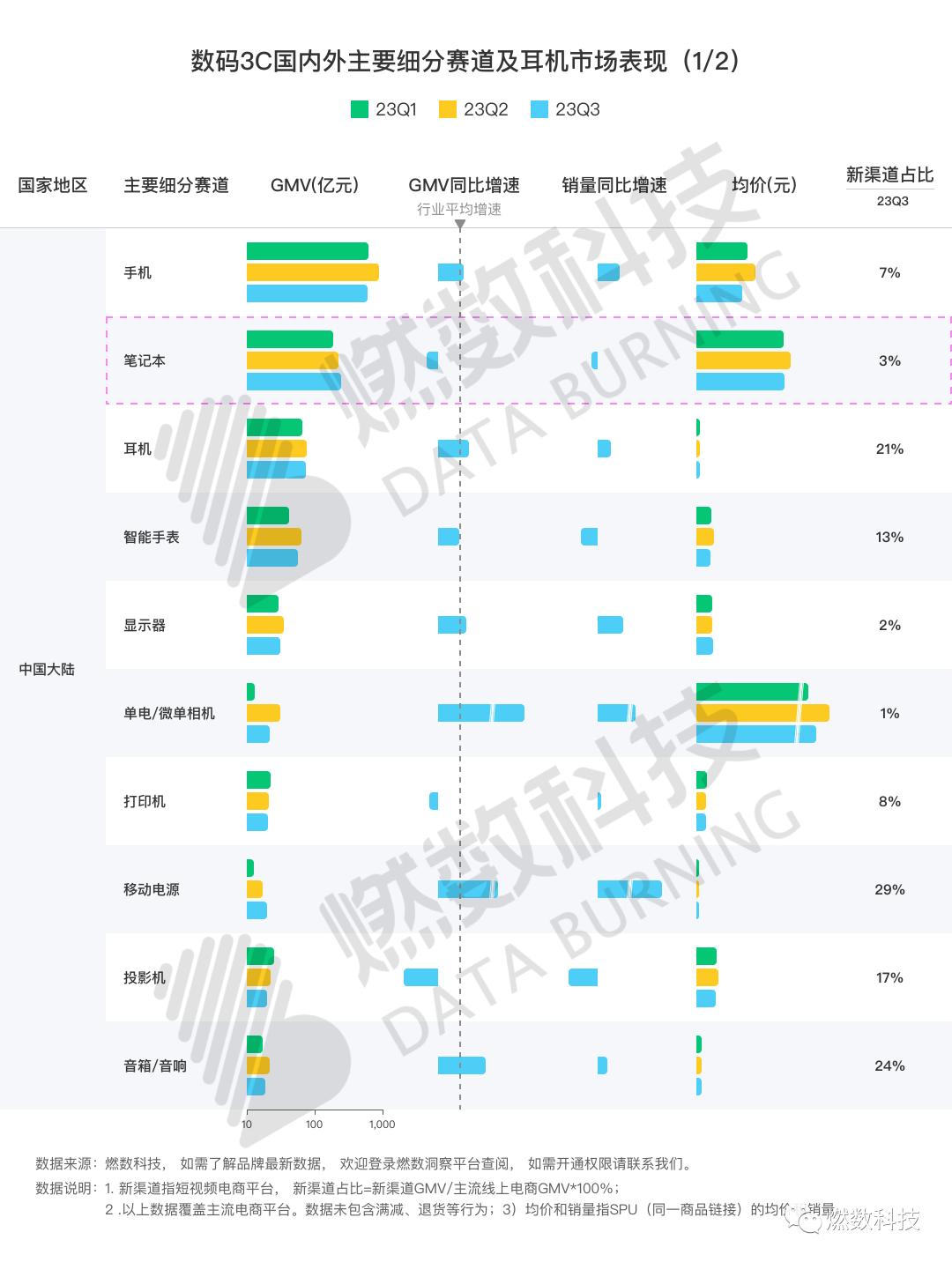 欧美数码3C行业趋于成熟,23Q3增速不及大盘平均;中国大陆及东南亚数码3C呈现稳步上升趋势。