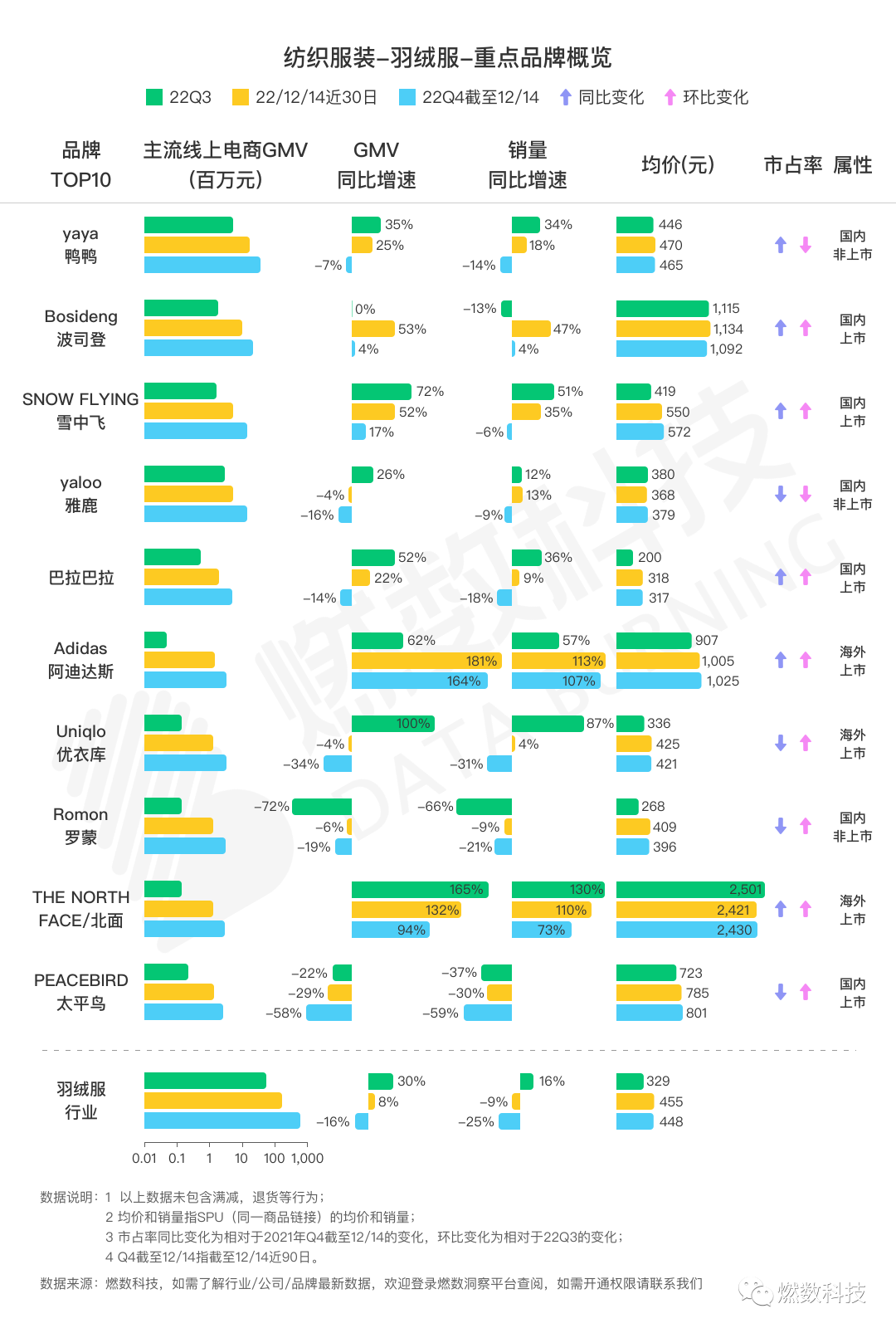 22Q4截至12/14,羽绒服行业同比增速为-16%,但随着12月以来天气转凉+防疫政策优化,截至12/14近30日行业增速为8%,较11月上升42pct;