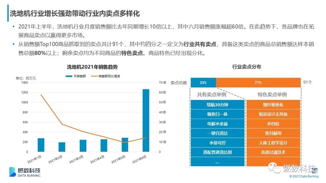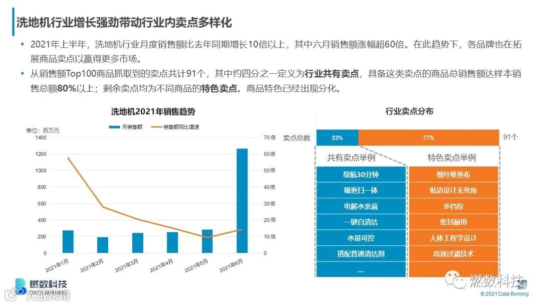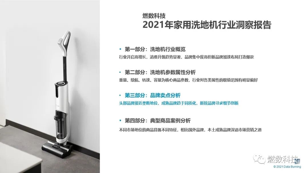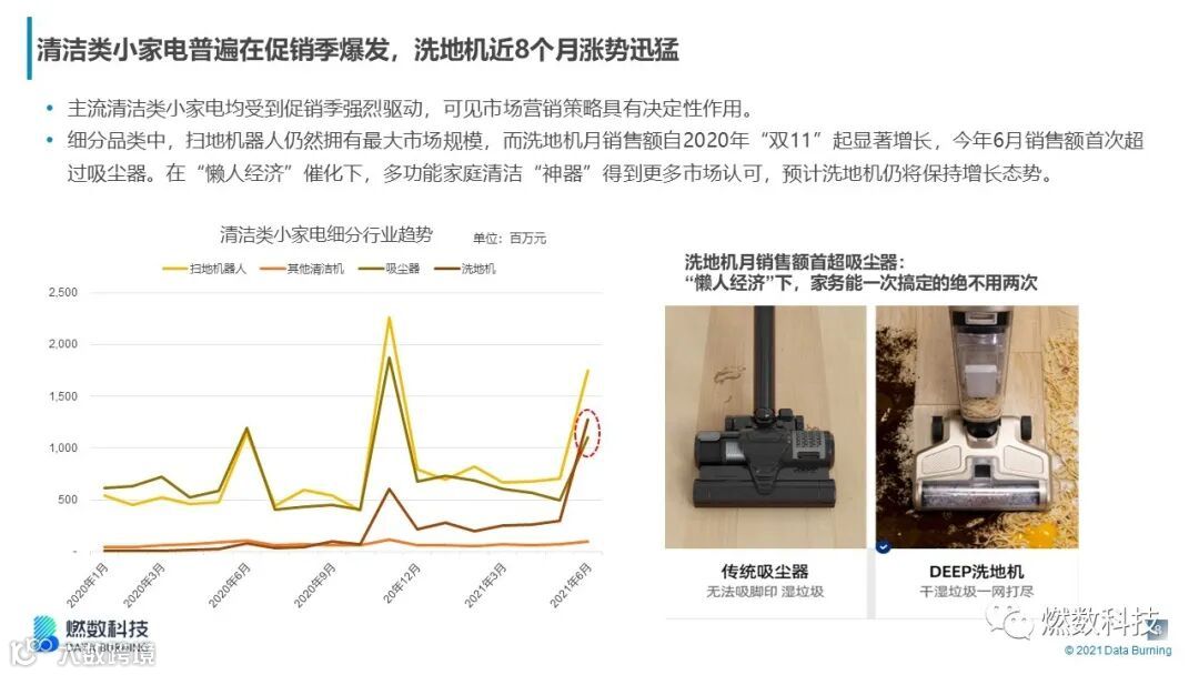 燃数认为,洗地机能如此轻易地颠覆清洁电器行业、占领消费者心智,主要得益于其精细化的设计无缝整合多种清洁功能、有效解决各类家庭清洁场景中的难题,并完美迎合了“懒人经济”下的市场需求。