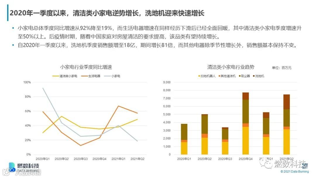 2021年,在小家电整体增速持续放缓的背景下,清洁家电逆势复苏,Q2销售额同比增速达49%。
