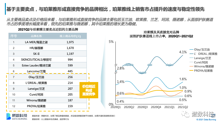 –珀莱雅品牌以低价切入面部护肤市场,对价格中高、历史更久的头部品牌构成威胁;