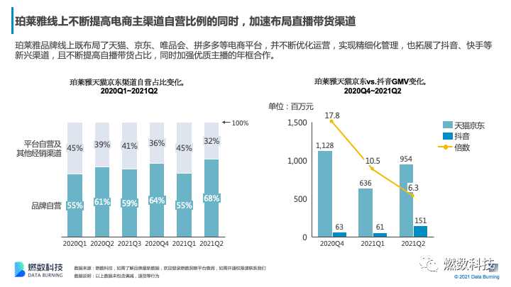 –珀莱雅品牌不断减少线下布局,线上逐步提高电商主渠道自营比例的同时,加速布局直播带货渠道。