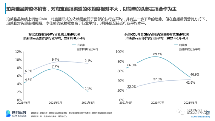 –珀莱雅品牌以补水保湿、提亮肤色等功效为其主要商品卖点,与同样以这些功效为主要卖点的品牌相比,珀莱雅表现更突出;