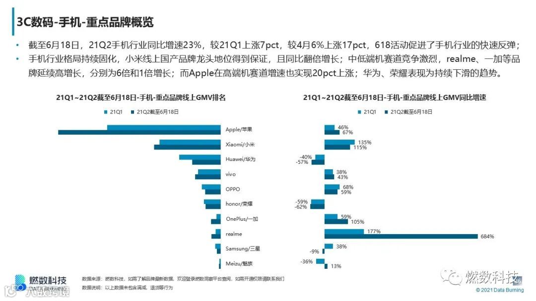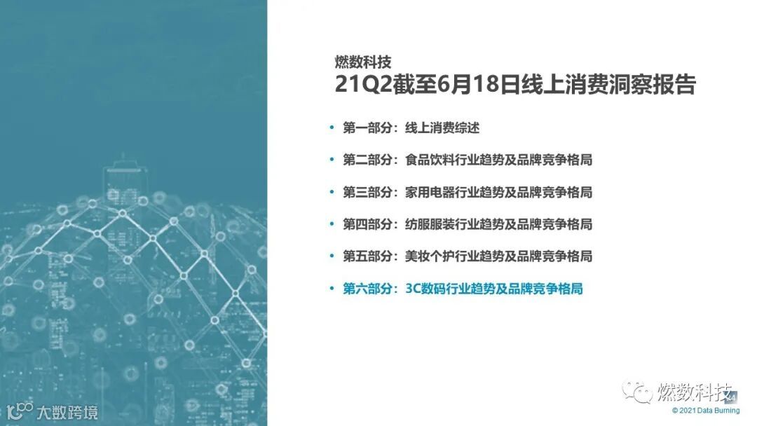 3C数码:线上GMV同比增速14%,手机、笔记本格局固化,数码产品表现依然突出;手机赛道苹果在高端机赛道保持稳定增长,小米通过品牌优势与新品研发力,继续巩固线上国产手机TOP1的地位,同时,中低端机赛道竞争激烈,realme、一加等品牌处于高速增长;笔记本赛道联想一家独大,苹果增速紧随其后;激光电视与投影仪赛道出现分化;摄影摄像设备热度尤在。