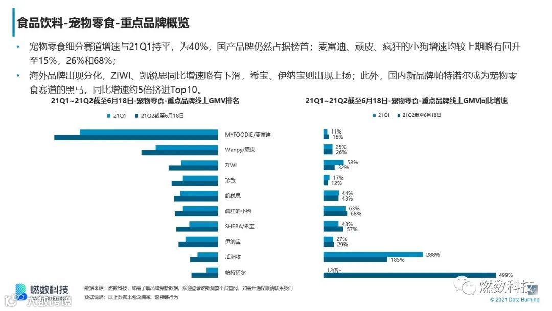 食品饮料:线上GMV同比增速7%,宠物食品、营养品持续高热度,行业头部品牌持续分化;方便食品、调味料等赛道增速持续回落,赛道整体表现不佳;国际婴幼奶粉品牌出现反扑,增速扩大。