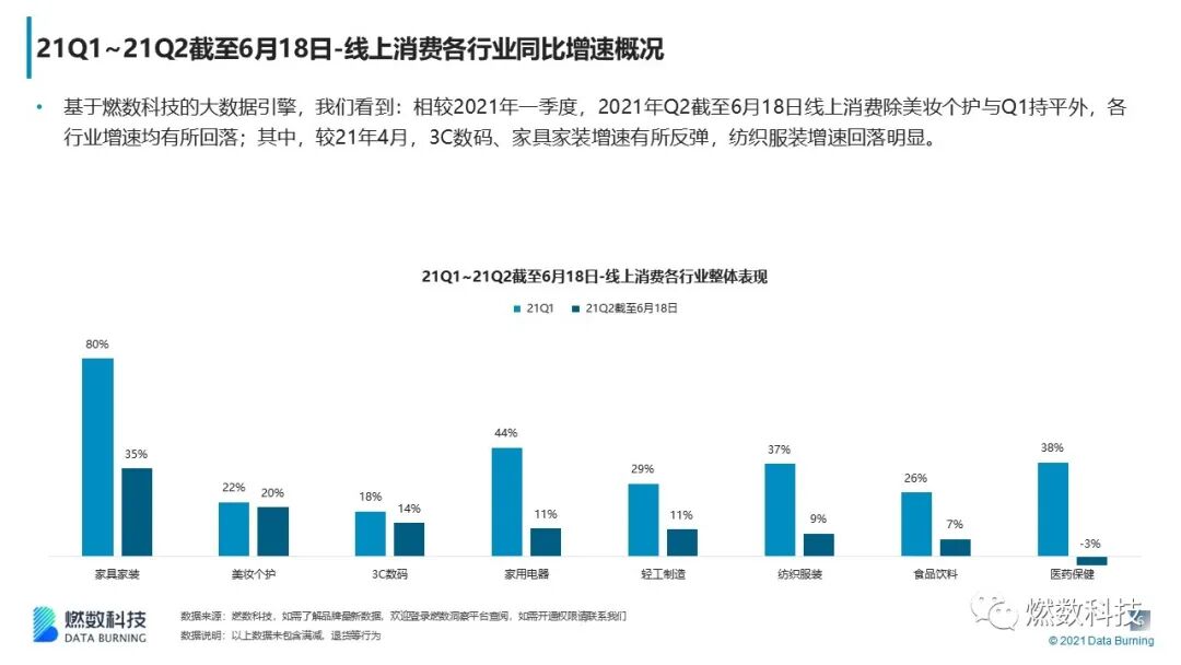 截至6月18日线上消费GMV同比增速16%(2021年一季度同比增速34%),家电、3C和美妆为近期线上表现最突出的行业,消费升级在各行业中均有所体现。建议重点关注行业的竞争格局变化。