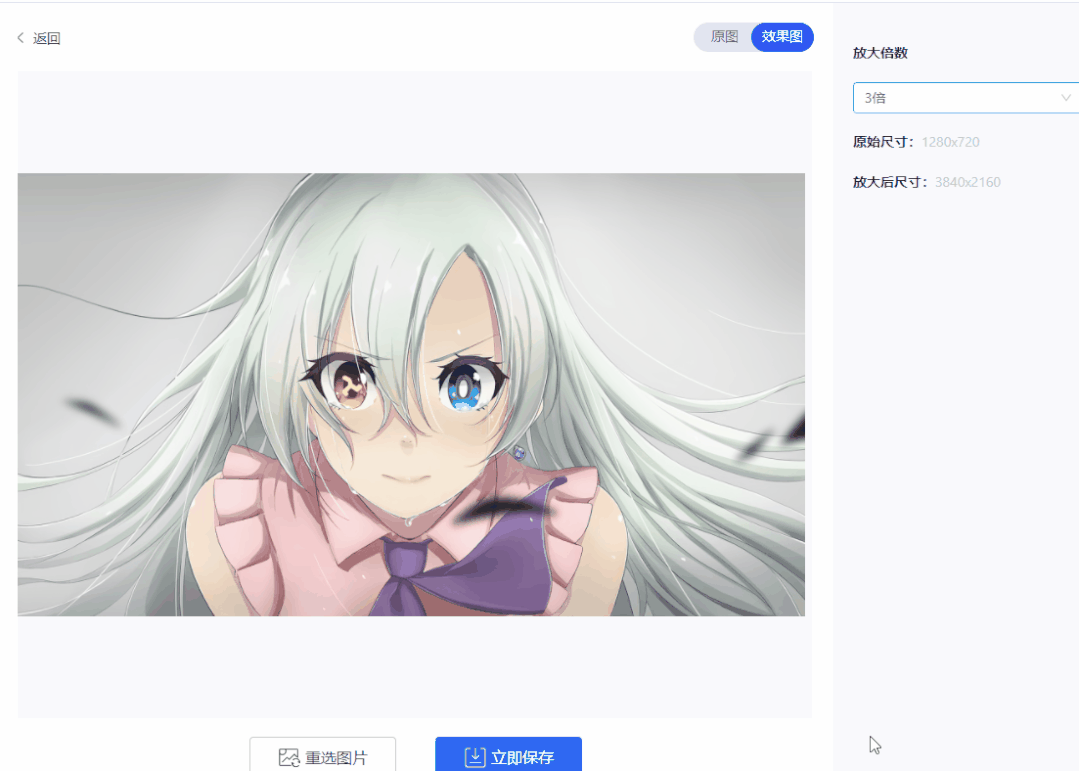 接下来就是见证奇迹的时刻,使用「图片无损放大」功能,试试不同倍数的效果