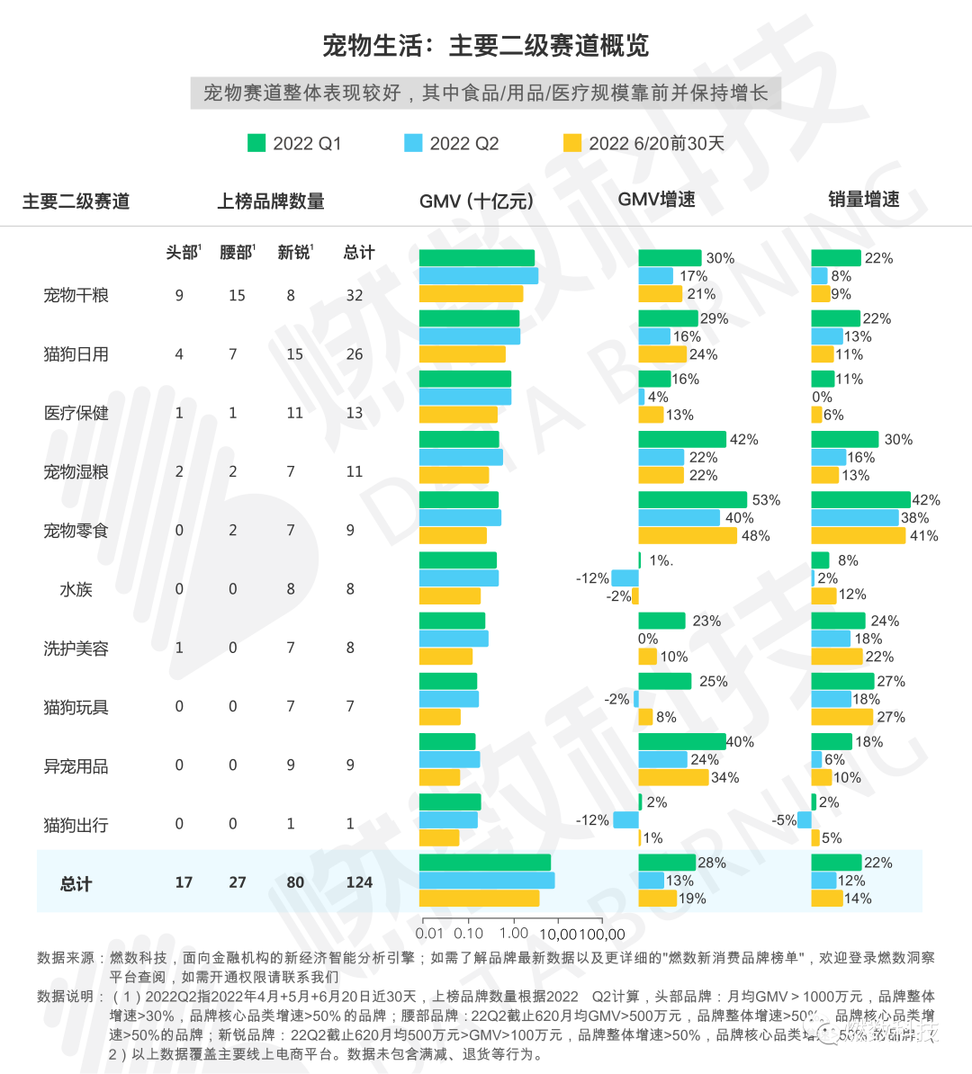 燃数腰部品牌上榜条件:22Q2月均GMV>500万元,品牌整体增速>50%,品牌核心品类增速>50%的品牌,具体表现如下: