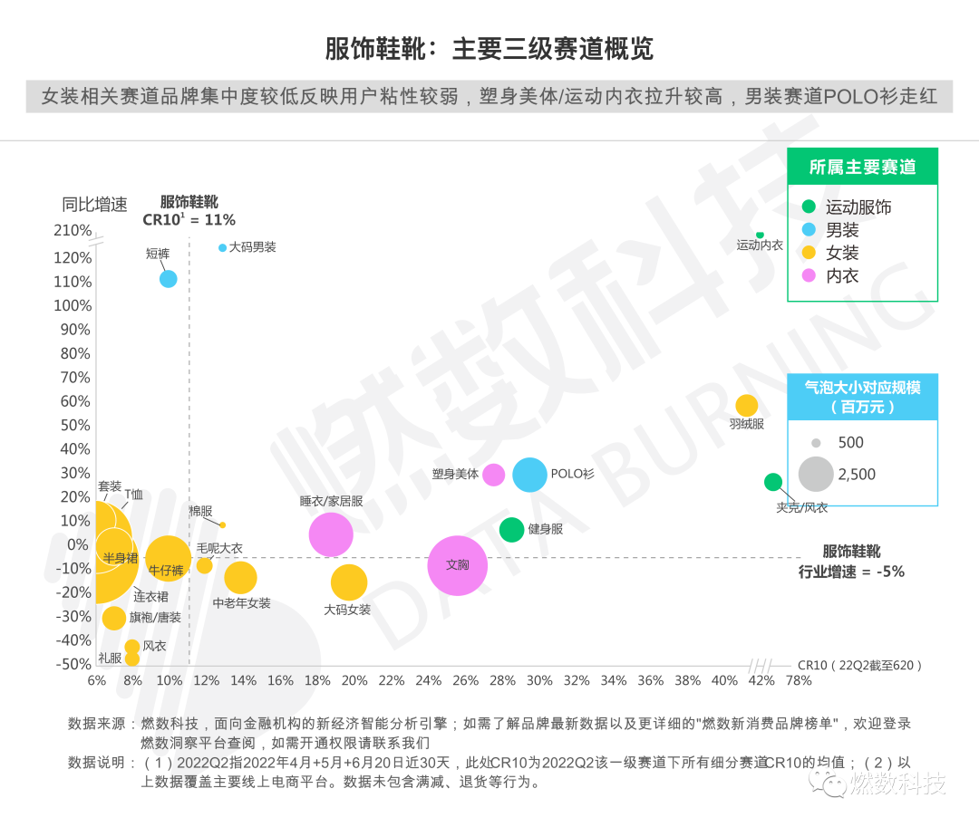 运动服饰赛道表现亮眼,全民运动风潮持续,加上疫情影响,居家健身需求激增,刺激健身服、塑身美体、运动内衣等赛道发展较好。