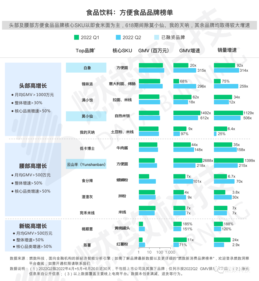 持续的“野性爱国消费”叠加疫情因素,白象方便面Q2保持315倍的高GMV增速。