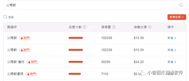 还可以按照节日热点来做预判:例如台湾站点,在8月有两个非常大的节日热点。台湾8月8号的“父亲节”、“七夕情人节”;如果现在关键字广告后台搜索一下热度,你会发现。这两个词的热度非常高