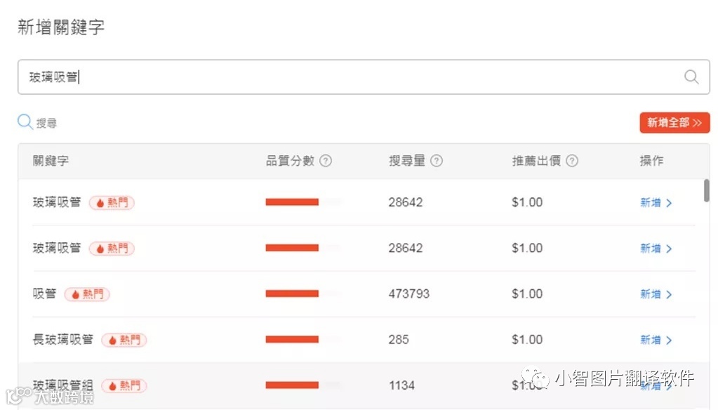 只要你做了这一步,再细心一点,就会发现跟“吸管”相关的几个核心关键字:吸管、环保吸管、玻璃吸管、不锈钢吸管、钛吸管、吸管防尘套……