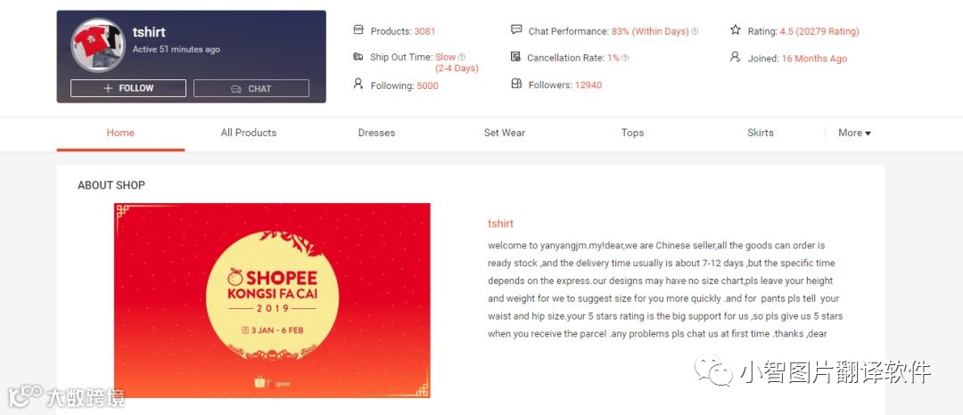 1.首先,登录Shopee平台选择任一销售较高的商品,进入到商品详情页,然后点击商品图片下方的【店铺按钮】进入到其店铺首页。