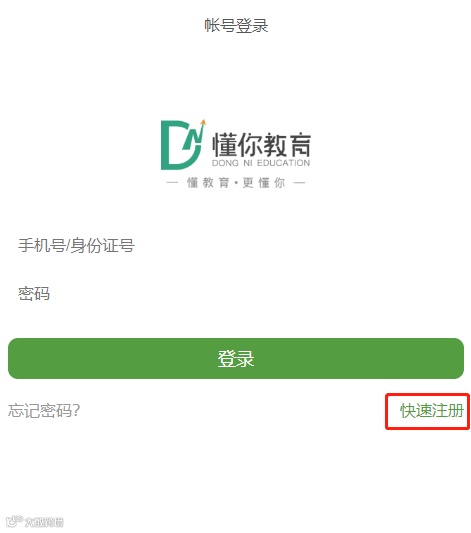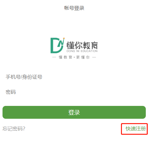 点击‘懂你主页’进入到首页,点击右下角--‘快速注册‘’进行注册,选择“学生身份” 后输入学生姓名和学号