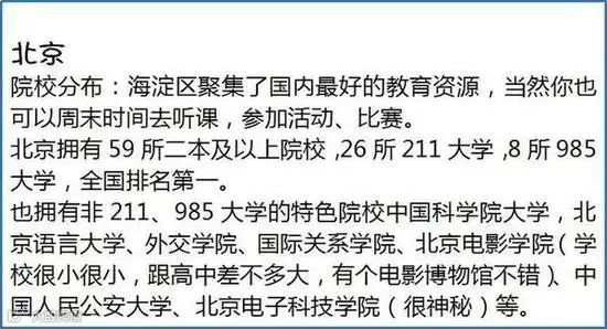 1、北京,据说一些高校要迁到雄安新区,不过几年内仍是国内顶尖教育资源汇集地!