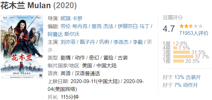 近期最受关注的院线片,非刘亦菲主演的《花木兰》莫属了。