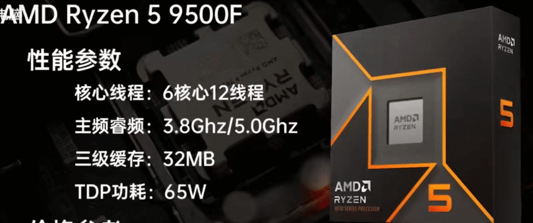 需要注意的是,锐龙5 9500F并不包含集成显卡(iGPU),因此用户在使用时需要搭配独立显卡。