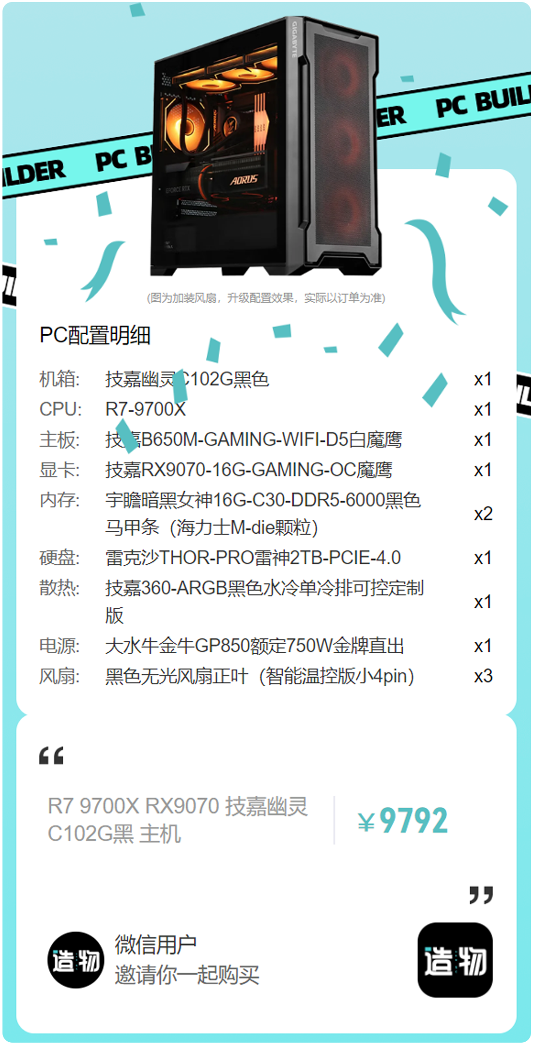 R7 9700X 搭配 RX9070 魔鹰显卡,轻松胜任3A游戏如《幻兽帕鲁》《地狱潜者2》《无畏契约》,2K/4K 高画质畅玩无压力。同时具备强大 GPGPU 能力,可用于运行图像生成、视频处理、AI推理等重负载场景。