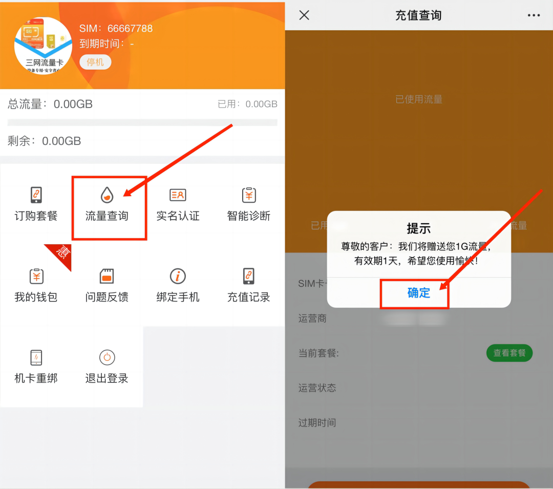 只有在本司报备的设备流量卡在我司公众平台可以领取1G流量体验包,