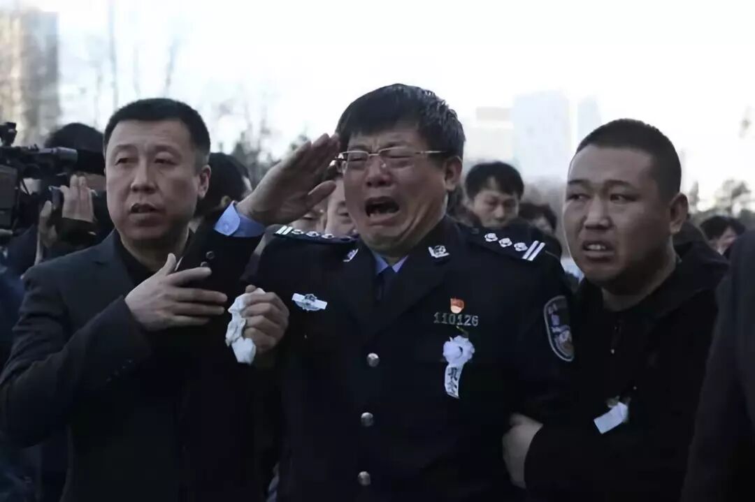 2018年3月31日,沈阳市公安局和平分局刑侦禁毒大队民警李尚恒侦办一起入室盗窃案,在与犯罪嫌疑人搏斗过程中英勇牺牲,年仅29岁。4月4日,群众自发走上街头为英雄送行。铁骨铮铮的警察父亲李浩,再也控制不住自己的眼泪,给儿子敬了个礼。(赵敬东/摄)