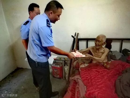 湖北省恩施市公安局盛家坝派出所所长秦探在审讯时,痛骂骗取低保老人养老金的犯罪嫌疑人,受到网民一致点赞。图为民警送还老人被骗的600元养老金。(龙宗华/摄)