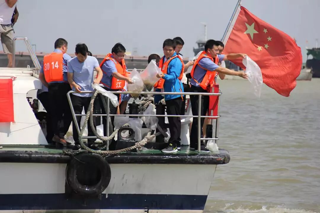 2018年6月25日,440万尾鱼儿放流回归洞庭湖。这是湖南省岳阳市岳阳楼区人民检察院联合区法院、长航公安局等单位举行的该市首次刑事附带民事公益诉讼增殖放流活动。(李明皓/摄)