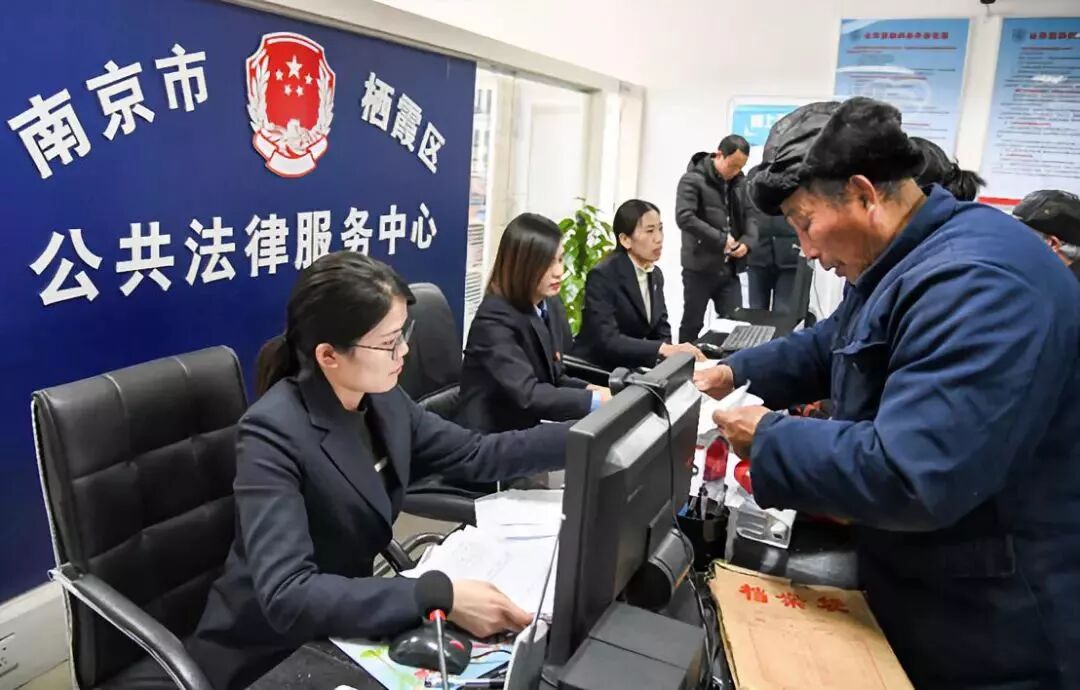 2018年1月30日,江苏省南京市栖霞区公共法律服务中心,工作人员接待申请法律援助的群众。(王建军/摄)