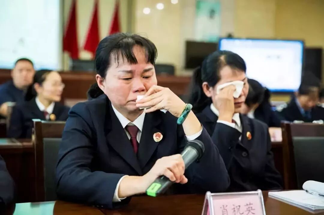 2018年6月22日,福建省三明市沙县监察委查办的首起职务犯罪案开庭,因涉嫌贪污罪逃亡22年的被告人朱某在接受公诉人法庭教育时,留下悔恨的泪水。(王生平/摄)