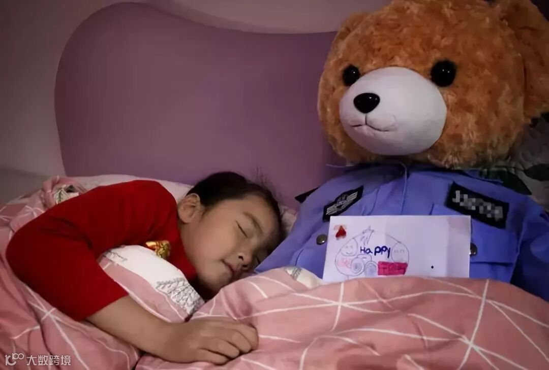 悠悠的妈妈是一名国家安全干警,因执行特殊任务,连续在外坚守157天。这一天是妈妈的生日,可妈妈还是没能回来。晚上,悠悠给心爱的小熊穿上妈妈的制服,感受着衣服上妈妈的味道睡着了。(蒲健/摄)