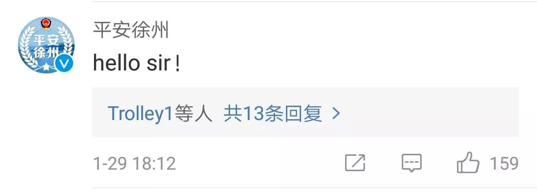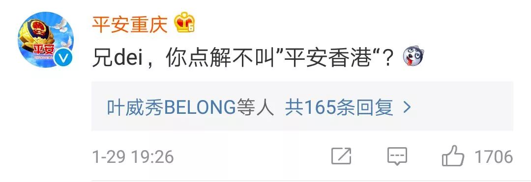 香港警察微博开通,@中国长安网也及时问候了这位新成员