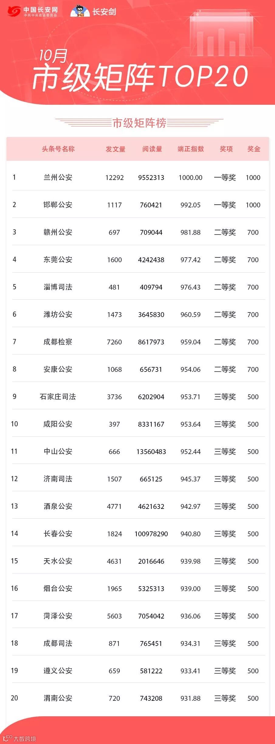 大同政法头条号连续两个月荣列榜首,他们的做法是:一是打造尖兵队伍,工作人员坚持“2+1+1”工作学习法,即2小时网上工作,1小时线下文章,1小时交流讨论,及时消化、及时提高;二是提高宣传影响力,目前,大同市政法系统已开通政法新媒体平台102个,形成了具有大同特色的新媒体矩阵;三是鼓励运用大白话写群众喜闻乐见的文章,坚决杜绝阴暗晦涩、自说自话、不顾读者感受的材料式文章出现。4个月间,大同政法从零起步,“吸粉”13余万,并在做大做强平台的基础上,着力培育政法“网红”名人和意见领袖。