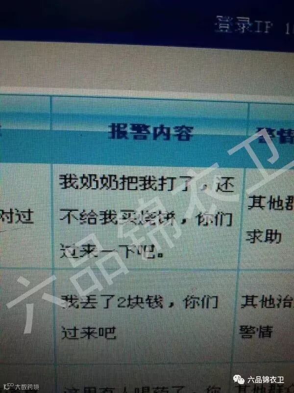 报警:我奶奶把我打了,还不给我买烧饼,你们过来一下吧;我丢了2块钱,你们过来一下吧。