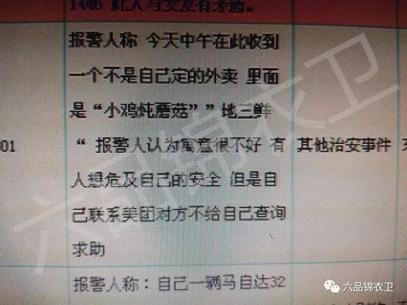 报警:中午在此收到一个不是自己定的外卖,里面是“小鸡炖蘑菇”、“地三鲜”,报警人认为寓意很不好,有人想危及自己的安全,但是自己联系美团对方不给自己查询,求助。