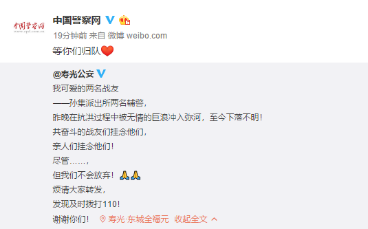 两名辅警的安危牵动着战友们、亲人们、网友们的心,大家纷纷留言祈福,期盼他们早日平安归队。