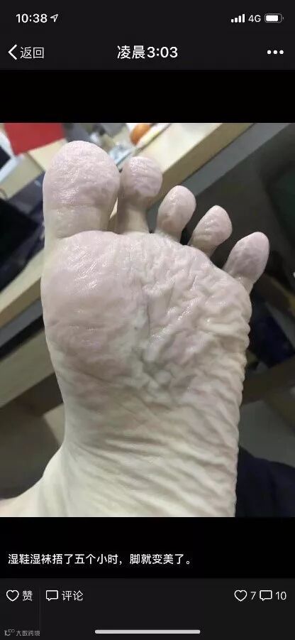 “湿鞋袜捂过5小时后,脚变美了。”他这样说。